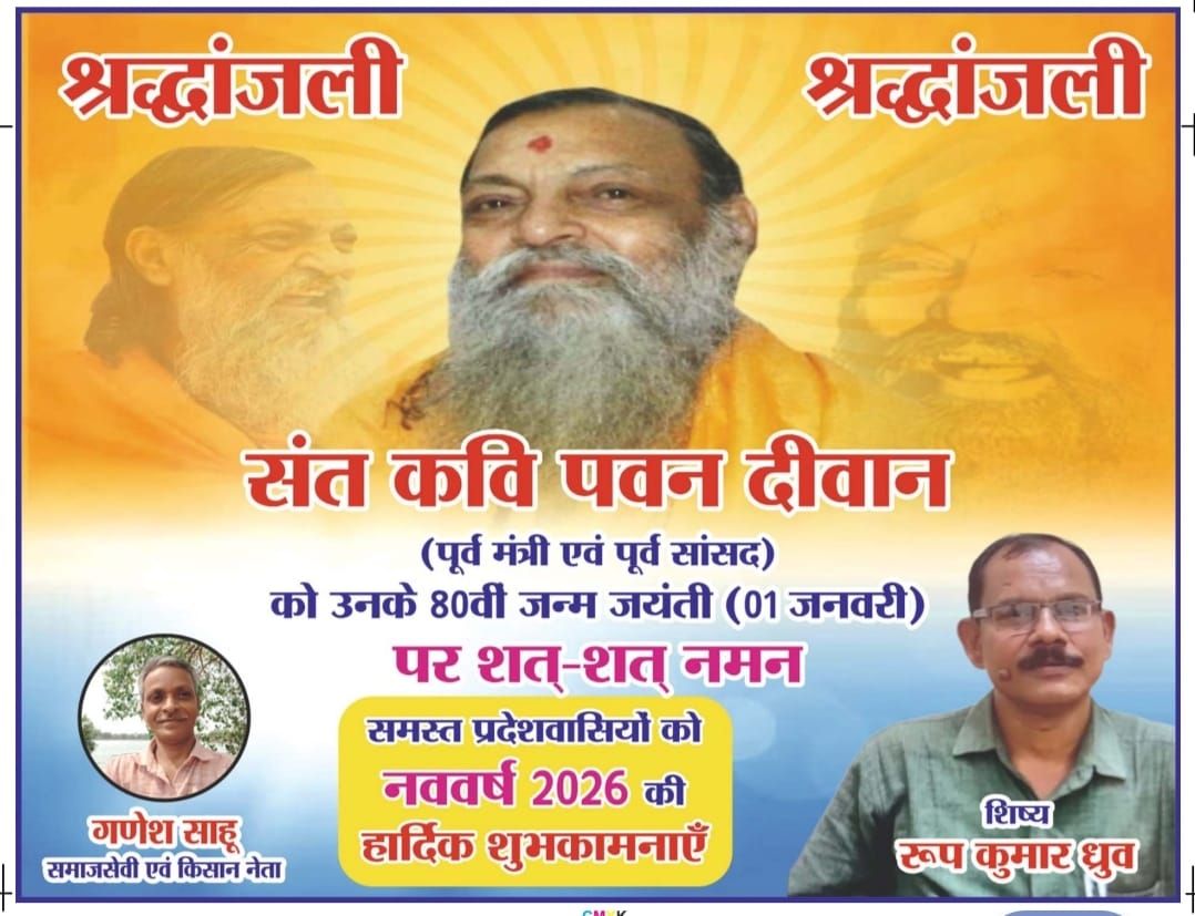 गरियाबंद@राजिम :- साक्षात् माँ सरस्वती जिनके कंठ में विराजते थे और अपने उसी कंठ से आशीर्वचन स्वरुप श्रीमद् भागवत कथा का रसपान कराते हुए एक दिन उसी परमात्म सत्ता में एकाकार हो बुंद स्वयं सागर हो गए ऐसे स्वामी अमृतानंद सरस्वती जिन्हें हम सब संत कवि पवन दीवान के रूप में जानते और पहचानते है और जिनकी आज जन्म जयंती है. छत्तीसगढ़ के उस लाल को आज पहली जनवरी को यादकर भावविभोर होने का दिन है. फक्कड़ साधू और विनोदी स्वाभाव के स्वामीजी को श्रद्धासुमन अर्पित करने का आज पावन दिवस आया है. इस सुअवसर में छत्तीसगढ़ का हर लाल आज गर्व और गौरव का अनुभव कर सकता है कि एक महामानव राजिम के पास किरवई गाँव में जन्मा था जिन्होंने भगवान राजिमलोचन की धरती राजिम को अपना कर्मभूमि बनाया और जीवन जीने की सच्ची कला को अपने जीवन से जीकर एक उदाहरण के तौर पर प्रस्तुत किया.